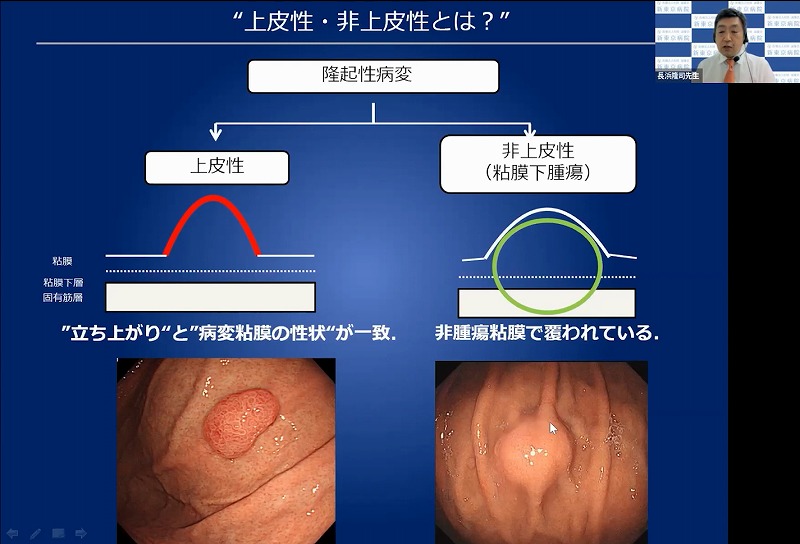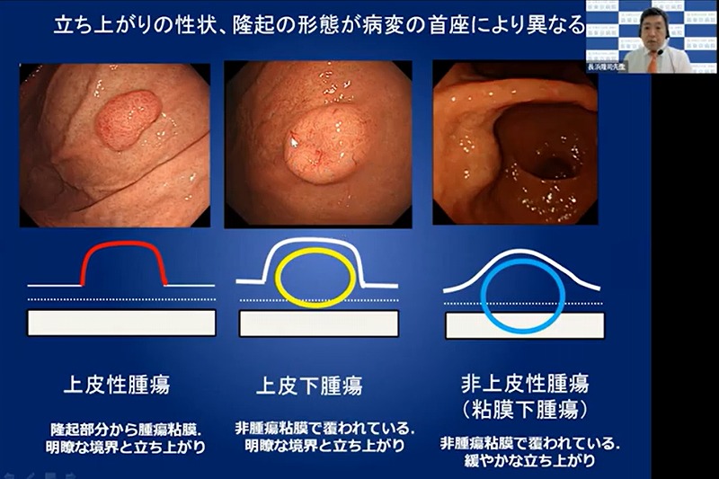 長浜先生は、「病変がどこから発生するか、病変の首座はどこにあるかを十分に頭に入れた上で、隆起性病変を診断する必要がある」と、首座を予測することの重要性を強調します。